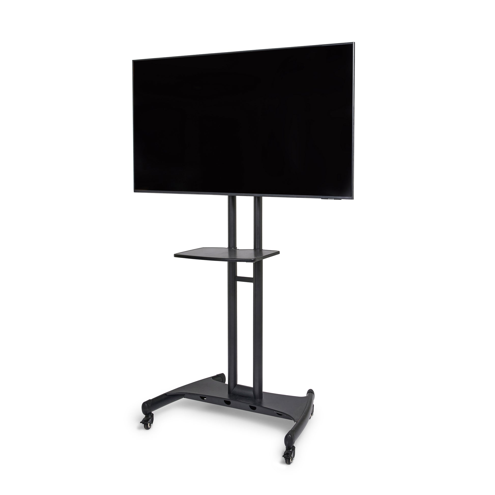 A TV stand that can host your TV screen, with an adjustable shelf that can hold electronics or displays. The TV stand makes an eye-catching addition to your booth.